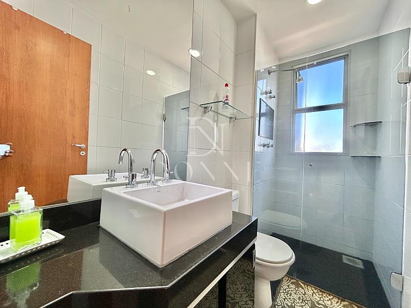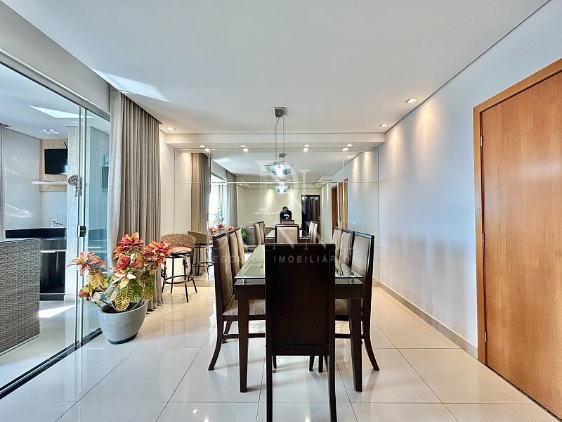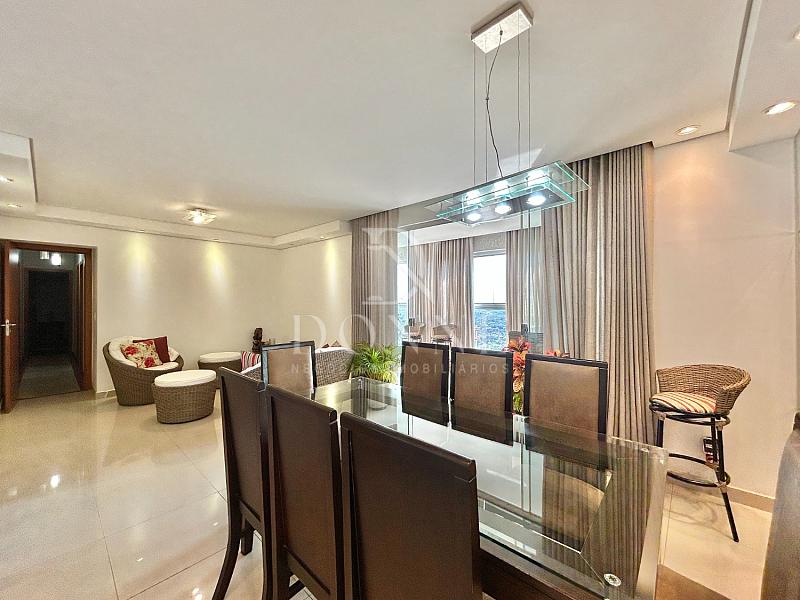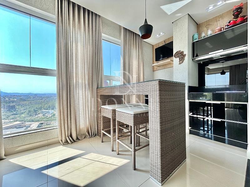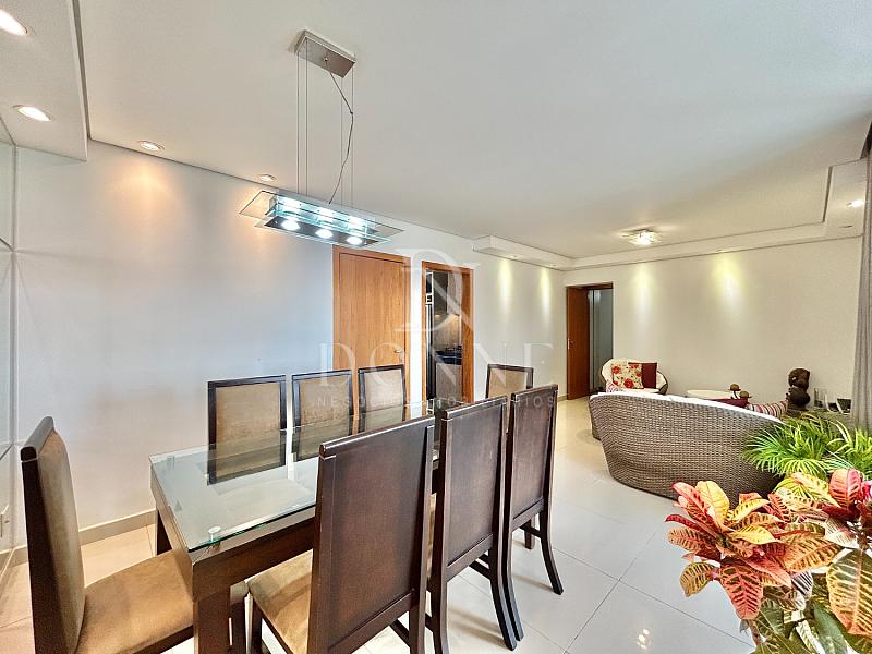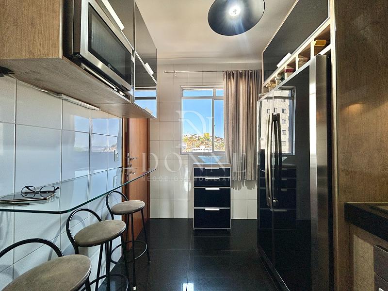 A cozinha, moderna e funcional, conta com armários planejados, bancadas em granito e eletrodomésticos em ótimo estado. Integrada à área de serviço e com DCE completa, garante praticidade no dia a dia.