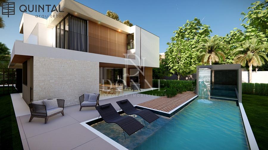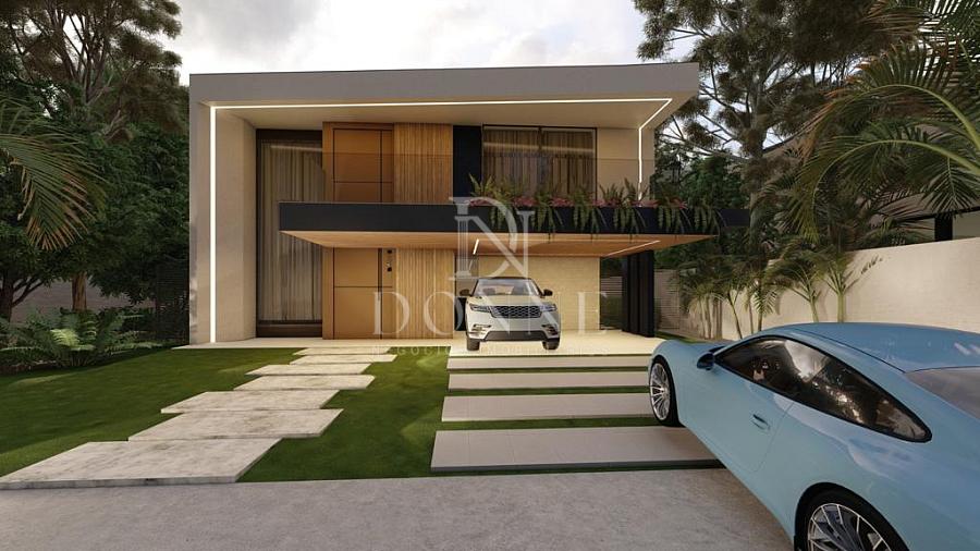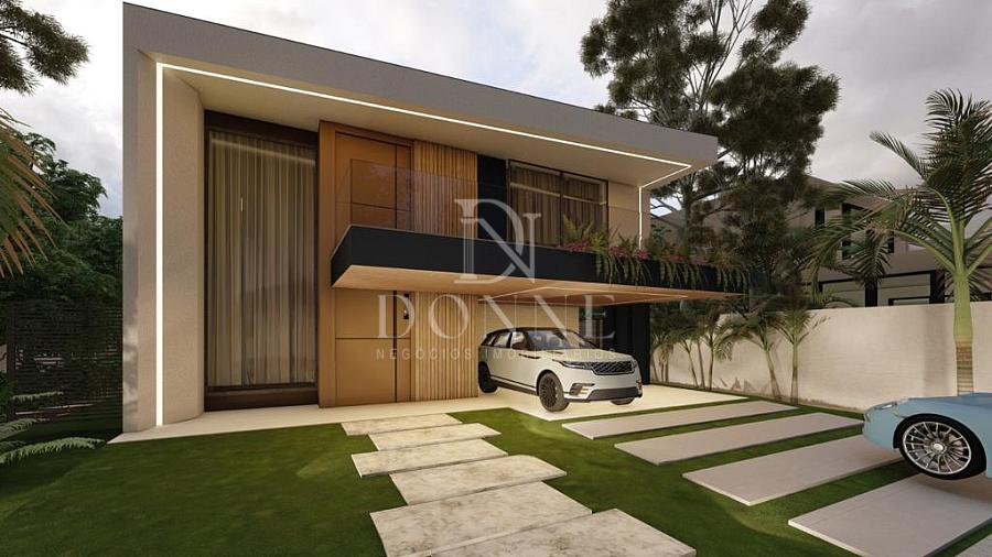 Com cerca de 400m² de construção, sendo aproximadamente 370m² de área coberta, a casa apresenta estrutura e acabamentos de alto padrão, distribuídos em dois pavimentos.