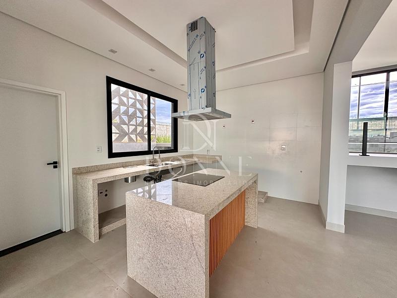 • Cozinha americana integrada, com bancada em granito, coifa, despensa e ilha com cooktop por indução de 4 bocas