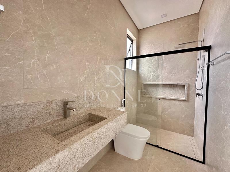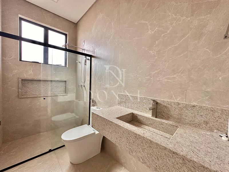 • Banheiro social com bancada em granito, box em blindex e acabamento impecável